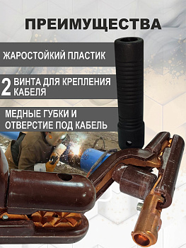 - Зажимы и держатели: держатели электродов, массы, кабельные зажимы.
