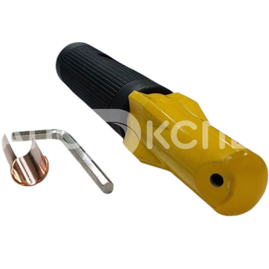 Конструкция из штампованных компонентов обеспечивает прочность и эффективный теплоотвод. Ключевая особенность — два отверстия для фиксации электрода под углами 45° и 90°, что обеспечивает гибкость в работе и оптимальный доступ к сложным соединениям. Медная контактная группа и винтовой зажим гарантируют надежное соединение с кабелем и минимальные потери мощности.
